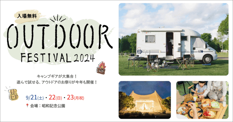 情報はタイトル・日付・会場を大きく配置し、誰が見てもすぐにイベント概要が理解できるよう工夫しました。あわせて、キャンプや食事を楽しむシーンの写真を用いることで、会場の雰囲気がイメージしやすいようにしました。