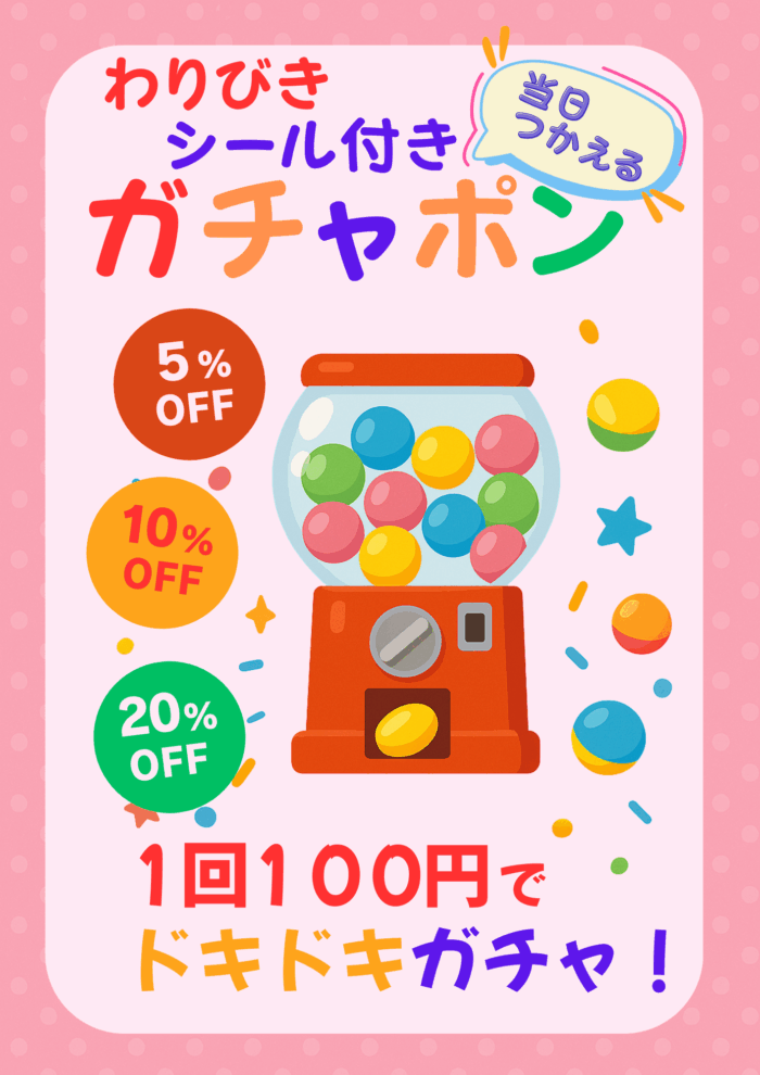 Canva/ワークス ガチャポンPOP Posted on 2025年11月19日 by mika 《 親子のわくわくをつくるポップデザイン 》色と形の楽しさを活かし、親子が思わず立ち寄りたくなる明るい雰囲気に仕上げました。企画の魅力が直感的に伝わるよう、読みやすいレイアウトと元気な配色を意識しています。 ⏱️ 制作日数:1日間 🪄 Canva mika mika の投稿をすべて表示